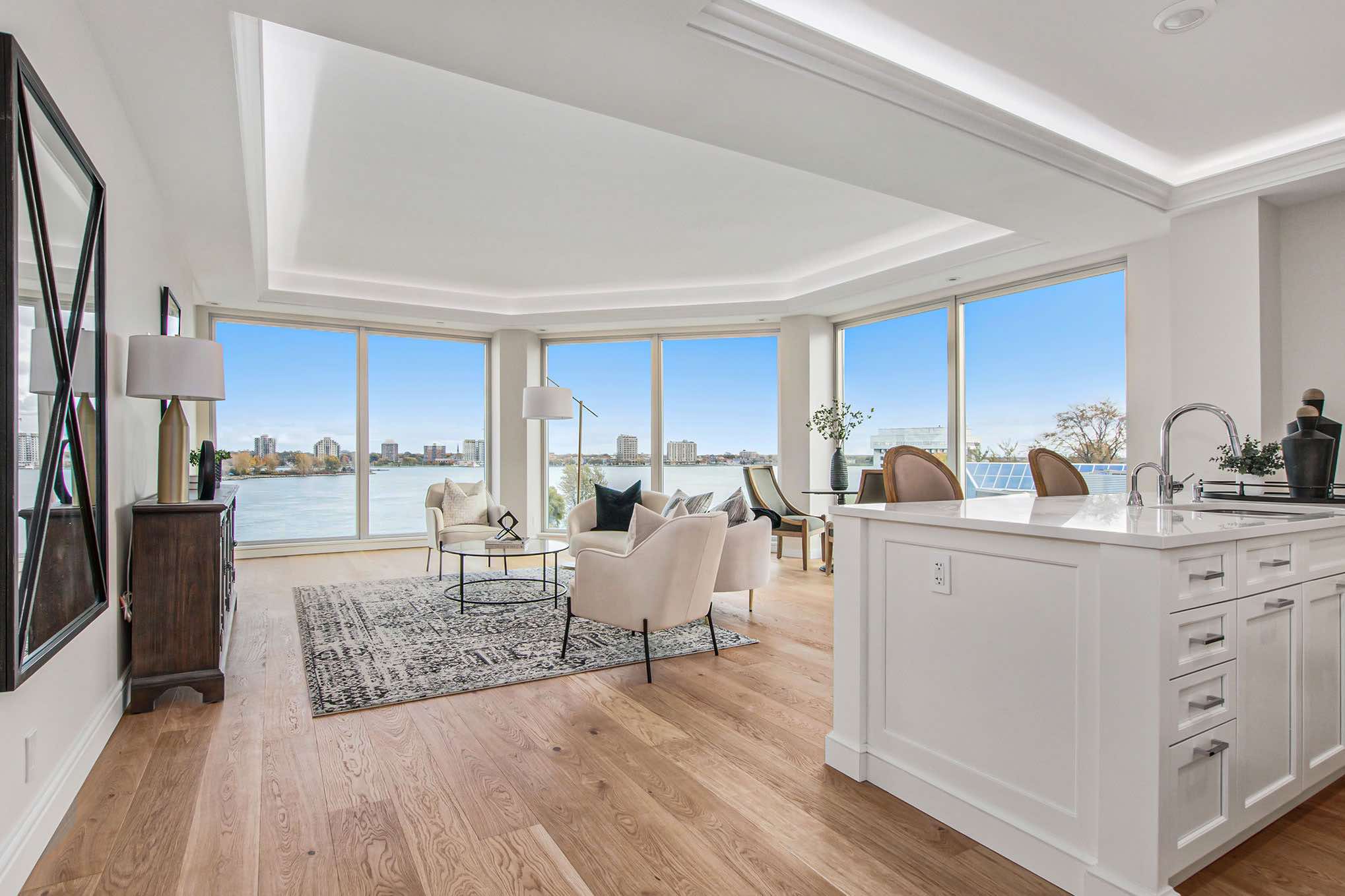 While this unit is currently white-boxed and awaiting your design selections, it presents a blank canvas ready to be transformed into the home of your dreams by our contractors.The photos included in this listing are of a prior completed layout which included optional upgrades to showcase the possibilities, however individual build outs will vary based on selections. Come experience luxury waterfront living at Bluewater View Condos. Nestled along the picturesque shores, this newly constructed high-rise offers views of the Blue Water Bridge and St. Clair River. Within walking distance to Downtown Port Huron, residents enjoy a lifestyle of convenience and elegance. This exquisite 2-bedroom, 2-bathroom residence boasts an open-concept layout, featuring a modern kitchen equipped with Maytag stainless steel appliances (Optional built-in upgrade available). Step out onto your private balcony enclosed with glass railings, offering views of passing ships and the serene river below. Inside, indulge in luxurious amenities such as a spacious walk-in closet, heated bathroom floors, optional gas fireplace, and convenient in-unit laundry facilities. The allure of Bluewater View extends beyond the walls of your residence, with a host of shared amenities designed to enhance your lifestyle. Take a dip in the indoor pool or relax in the sauna, workout in the fitness center, or host guests in the private hotel suite. Enjoy gatherings on the Riverfront Terrace, Club Room, or Social Room complete with a wet bar and fireplace. Additional perks include indoor assigned parking, heated driveway, a hobby room, storage facilities, and access to a rooftop deck offering panoramic views across to Canada. Experience a lifestyle of luxury and convenience at Bluewater View Condos, where every day feels like a retreat.